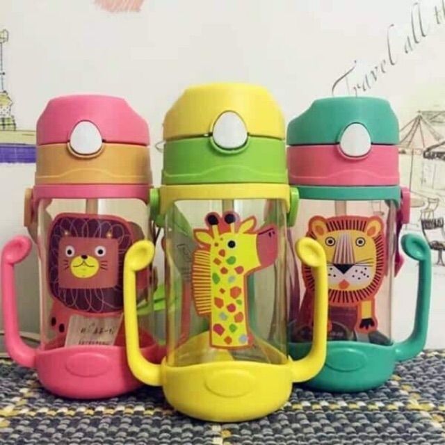 {FREE SHIP ĐƠN 50K} Bình nước 400ml có quai cầm + dây đeo và kèm ống hút cho bé