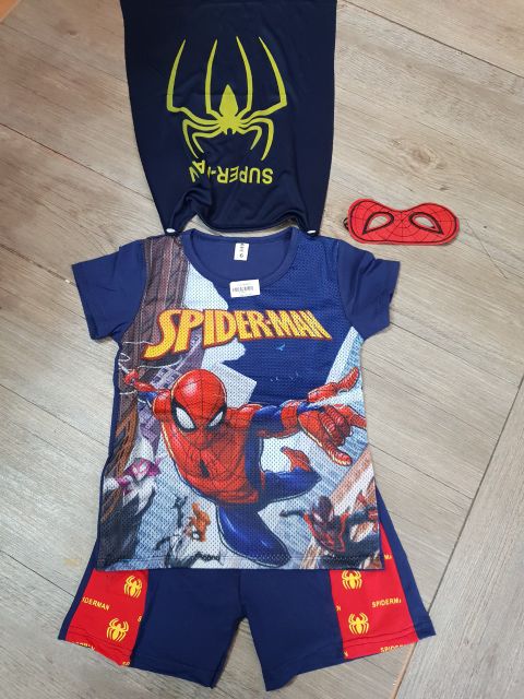 Bộ siêu nhân côtton lưới 4 chi tiết (mặt nạ kính, áo ,quần, áo choàng) cho bé trai 10-26kg free ship