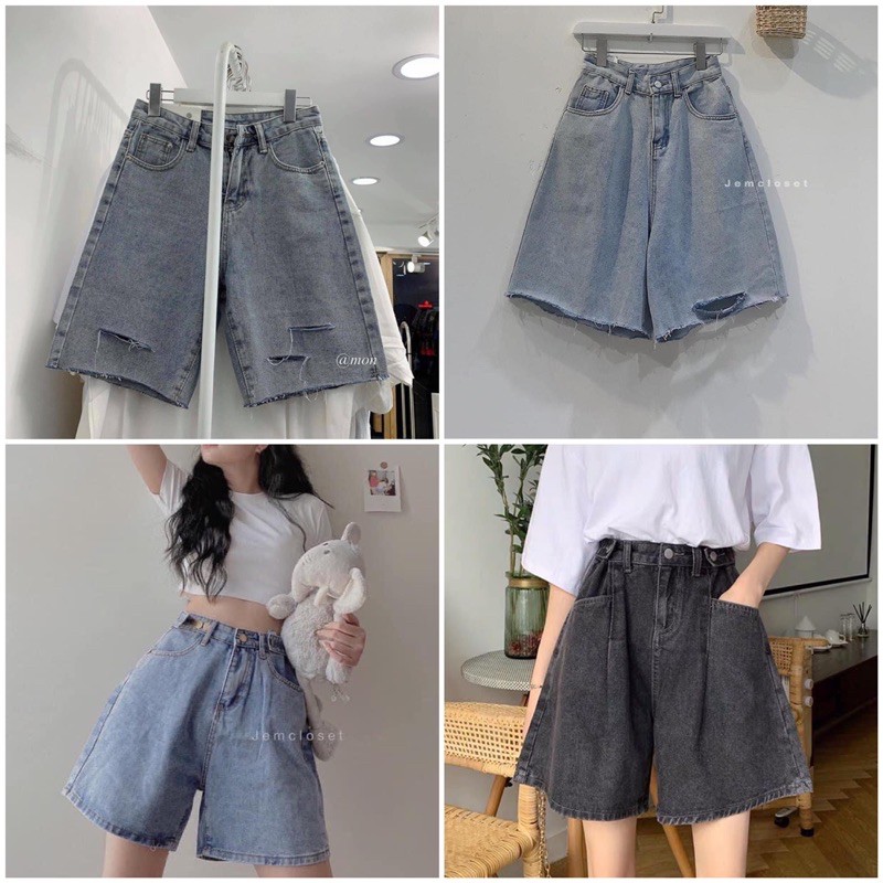 Quần Short Jeans Ngố Bò Nút Hông Ulzzang (2 Màu) free ship