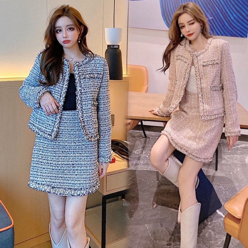 Sét dạ tweed nhũ viền siêu hót(Sẵn ) free ship