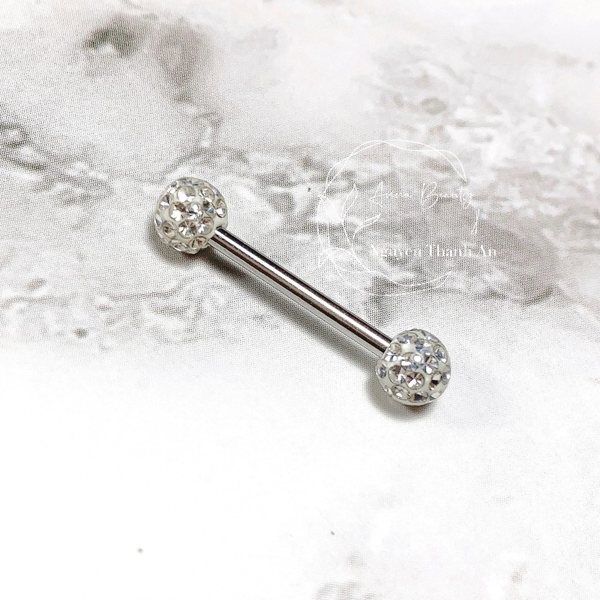 Khuyên lưỡi má đính đá siêu sáng bằng thép y tế free ship